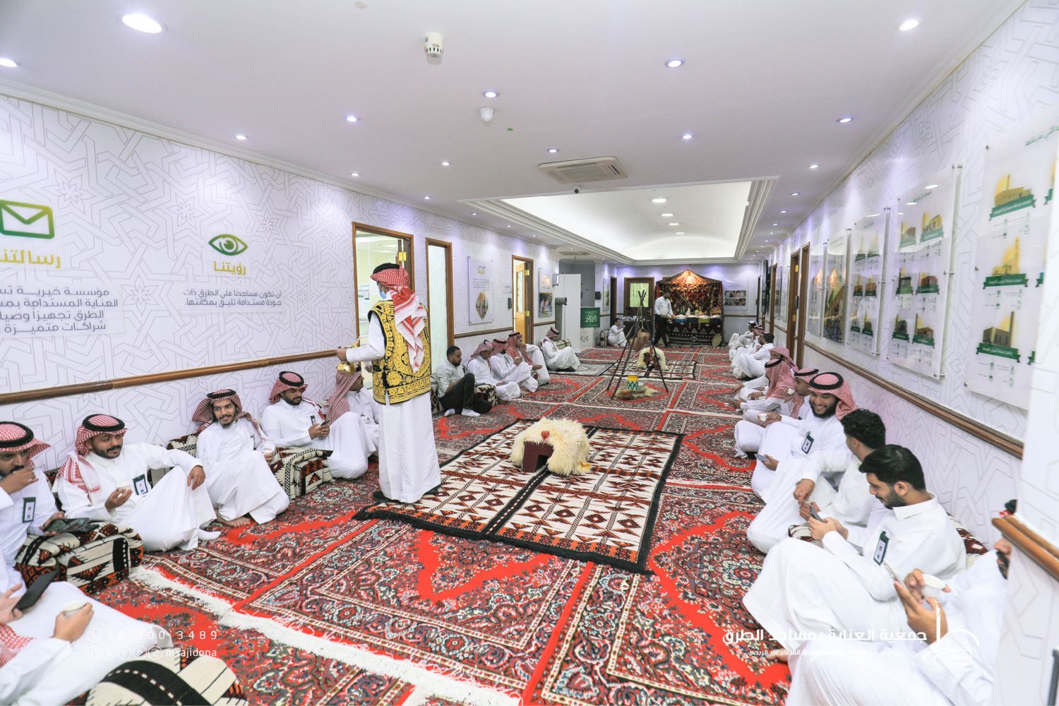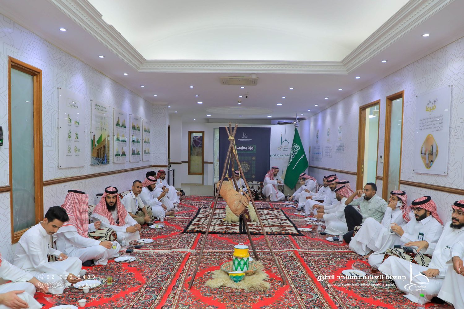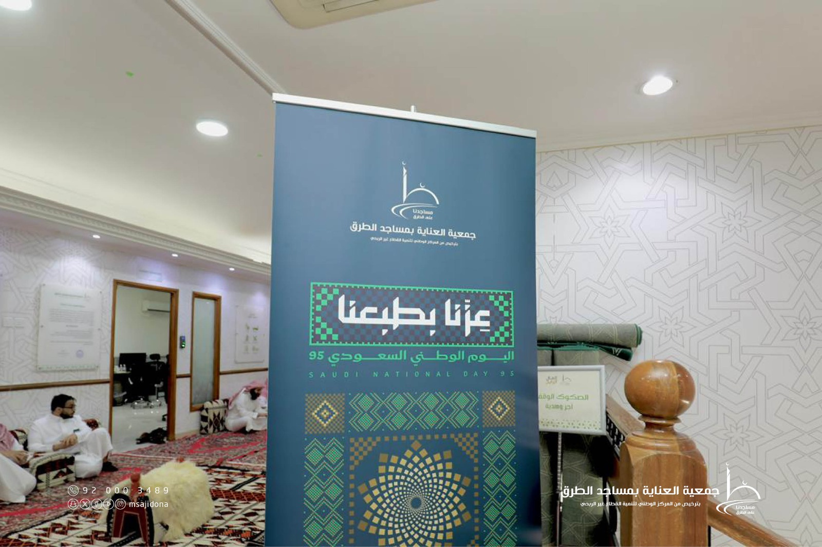احتفلت جمعية العناية بمساجد الطرق يوم الاثنين 19 ربيع الأول 1447هـ الموافق 22 سبتمبر 2025م، بمنسوبيها في مقرها الرئيس بمدينة الرياض، بمناسبة اليوم الوطني الخامس والتسعين للمملكة العربية السعودية، حيث حضر الحفل منسوبو الجمعية وقياداتها تعبيرًا عن مشاعر الفخر والانتماء لهذه المناسبة الغالية. وشهد الحفل فعاليات متنوعة جسدت الاعتزاز بتاريخ الوطن وإنجازاته، وأكدت أن حب الوطن فطرة راسخة في القلوب. ويأتي هذا الاحتفال تعبيرًا عن اعتزاز الجمعية ومنسوبيها بانتمائهم الوطني، وتجديدًا للعهد على مواصلة العمل لخدمة بيوت الله بما يواكب تطلعات المملكة ورؤيتها الطموحة 2030، سائلين المولى عز وجل أن يديم على وطننا الغالي أمنه وعزه واستقراره، وأن يحفظ قيادته وشعبه.