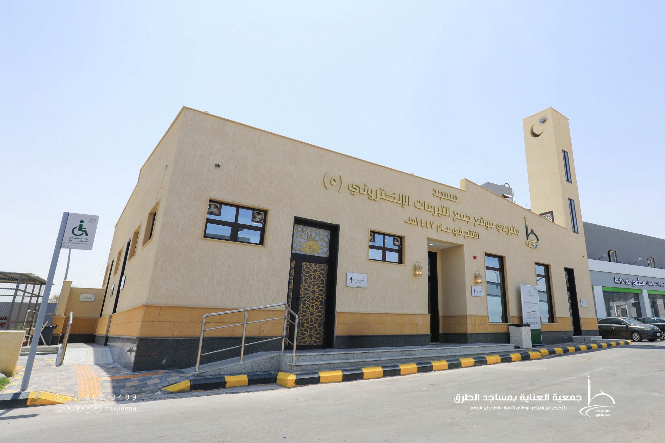 افتتحت جمعية العناية بمساجد الطرق، يوم الأربعاء 1447/03/18هـ الموافق 2025/09/11م، مسجـــــــد مـــتبرعــــي موقع التبرعـــات الإلكتروني الخامس، والذي تم بناؤه بفضل مساهمات سخية عبر موقع جمع التبرعات الإلكتروني للجمعية.